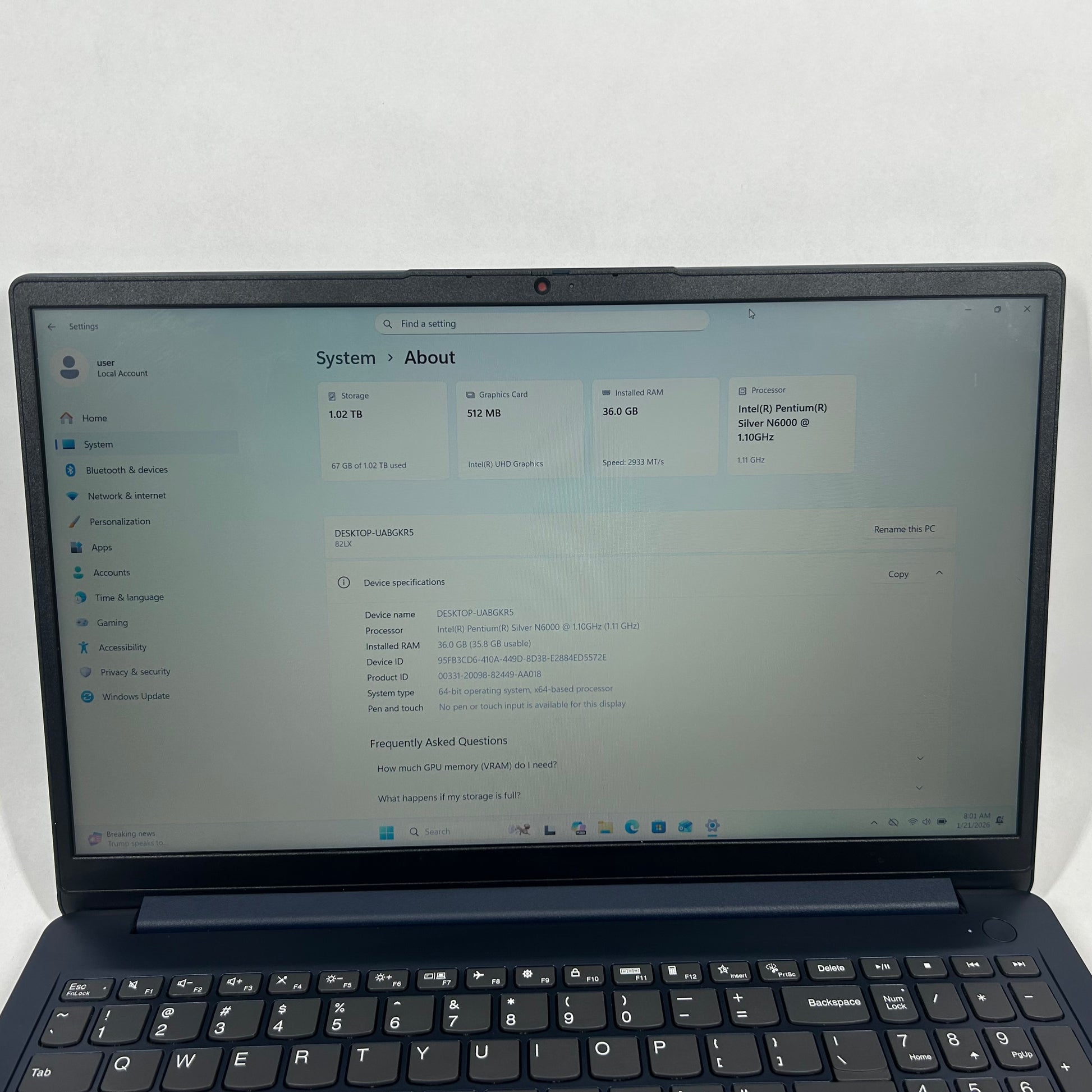 | Processor | Pentium Silver N6000 |