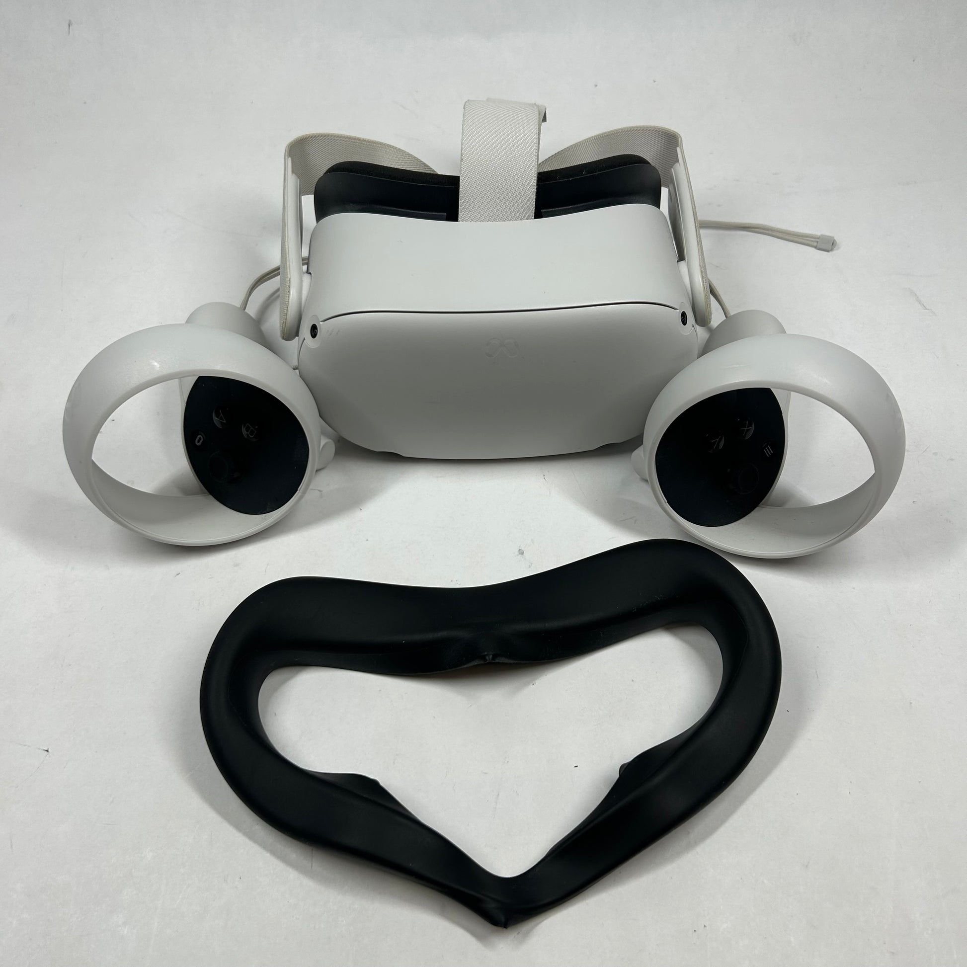 The left and right screens are in good condition, there are some light, but noticeable, marks from use, but nothing too significant. The casing is in good cosmetic condition with some light, but noticeable, scuffs, scratches, and wear from use. All of the ports are in good condition and clean. The headband is in good condition with some light to moderate wear. There may be some small stains and/or noticeable scuffs and wear from use. The controller(s) are in good condition with some light, but noticeable, scuffs, scratches, and wear from use. The facial interface is in good condition with some light, but noticeable wear. There may be some small cracking, scuffs, scratches, and/or wear. Please view our close up photos, as these are taken of the actual item being offered for sale.